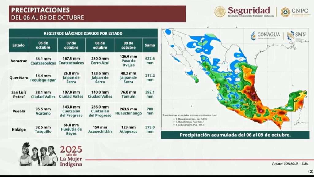 En tanto, la gobernadora Rocío Nahle García reportó que Veracruz enfrenta el impacto más severo, con 40 municipios afectados, seis municipios incomunicados y 81 comunidades aisladas.