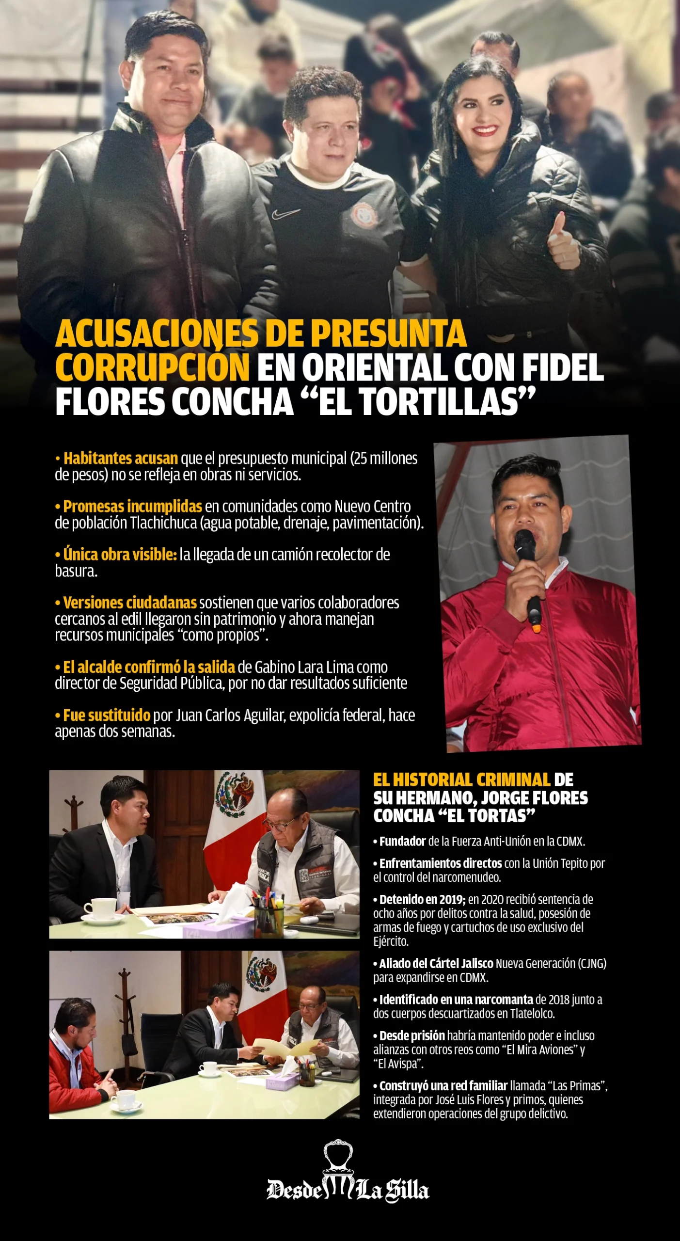 Las acusaciones por presunta corrupción, manejo excesivo de los recursos públicos y el tener un hermano vinculado con grupos criminales como el CJNG y Fuerza Anti Unión, terminó por explotarle en la cara a Fidel Flores Concha, alcalde de Oriental, luego de que la presidenta de México, Claudia Sheinbaum Pardo, pidió que se investigue si existen irregularidades en su administración.