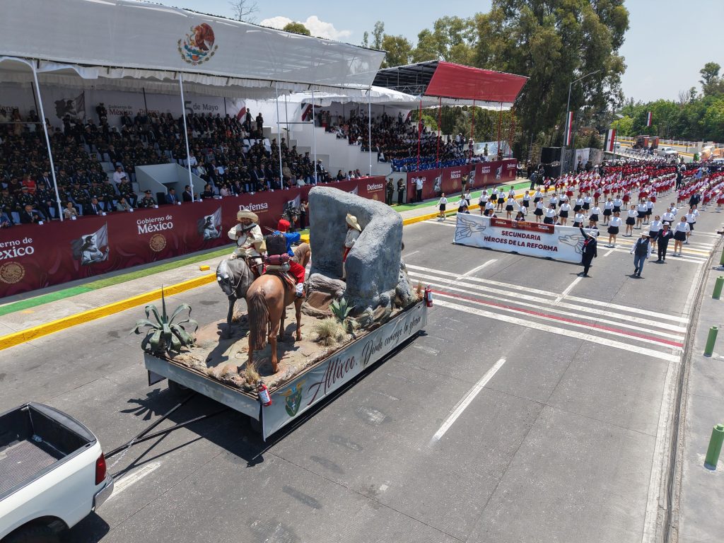 En compañía de nuestra presidenta, la Dra. @Claudiashein, llevamos a cabo el Desfile Cívico Militar por el 163 Aniversario de la Batalla de Puebla.🪖🇲🇽