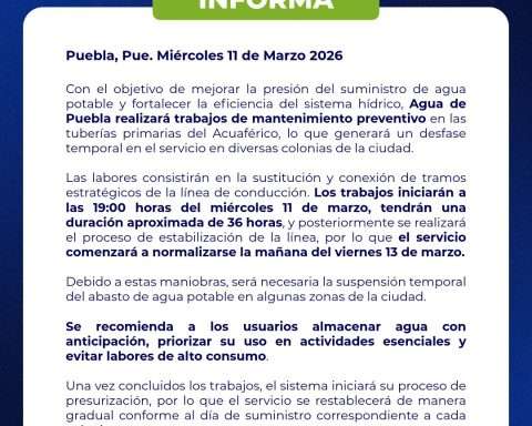 Este miércoles 11 de marzo, la concesionaria Agua de Puebla Para Todos inició trabajos de mantenimiento en las tuberías primarias del Acuaférico, lo que afectará el suministro