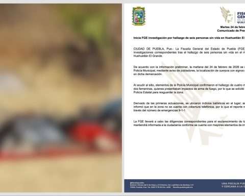 La Fiscalía General del Estado de Puebla (FGE) inició las investigaciones correspondientes tras el hallazgo de seis personas sin vida en el municipio de