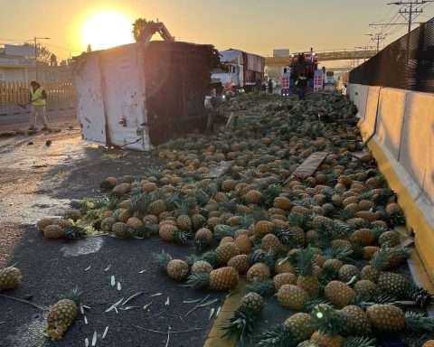 Toneladas de piña paralizan la México-Puebla tras volcadura
