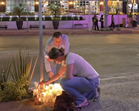 Entre velas, flores blancas y mensajes escritos a mano, familiares y amigos de Gisele Ortiz Carreto, Joaquín Wirth García y Emmanuel Esteban Campana se