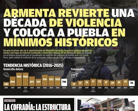 Armenta revierte una década de violencia y coloca a Puebla en mínimos históricos