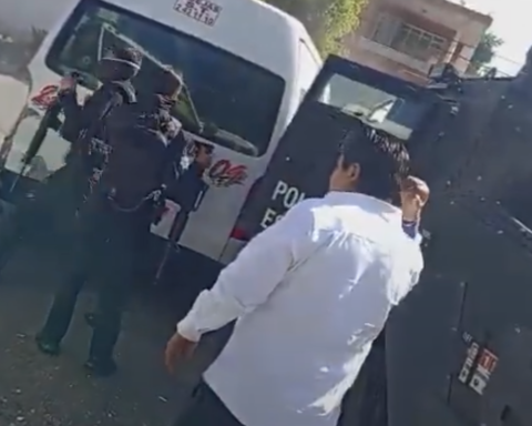La mañana de este jueves, un aparatoso choque entre una unidad blindada de la Policía Estatal y un camión del transporte público generó movilización