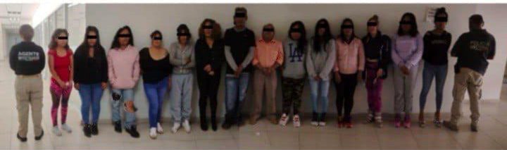 Durante el operativo, fueron detenidos Afrén N., Raymundo Jerónimo N., Susana N., Saraí N., Yazmín N., María Alejandra N., Dulce Denis N., Leeane Elizabeth N., Marisol N., Gladis N., Rosa N., Yovana N., Sandra N. y Flor de María Angélica N., en posesión de 61 envoltorios con el estupefaciente conocido como cristal.