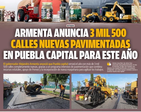 El gobernador Alejandro Armenta anunció que Puebla capital cerrará el año con más de 3 mil 500 calles completamente nuevas, gracias a un programa intensivo de pavimentación que combina recursos estatales, apoyo