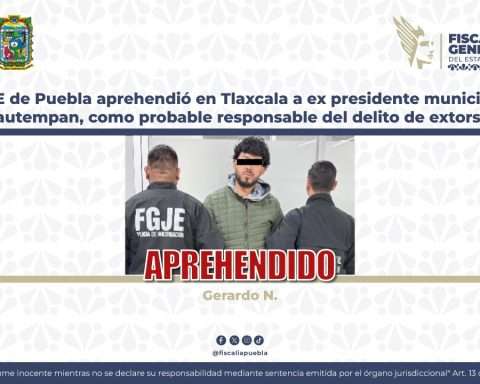 La Fiscalía General del Estado de Puebla, en colaboración con autoridades de Tlaxcala, dio cumplimiento a la orden de aprehensión en contra de Gerardo N., ex presidente municipal de Cuautempan, por su