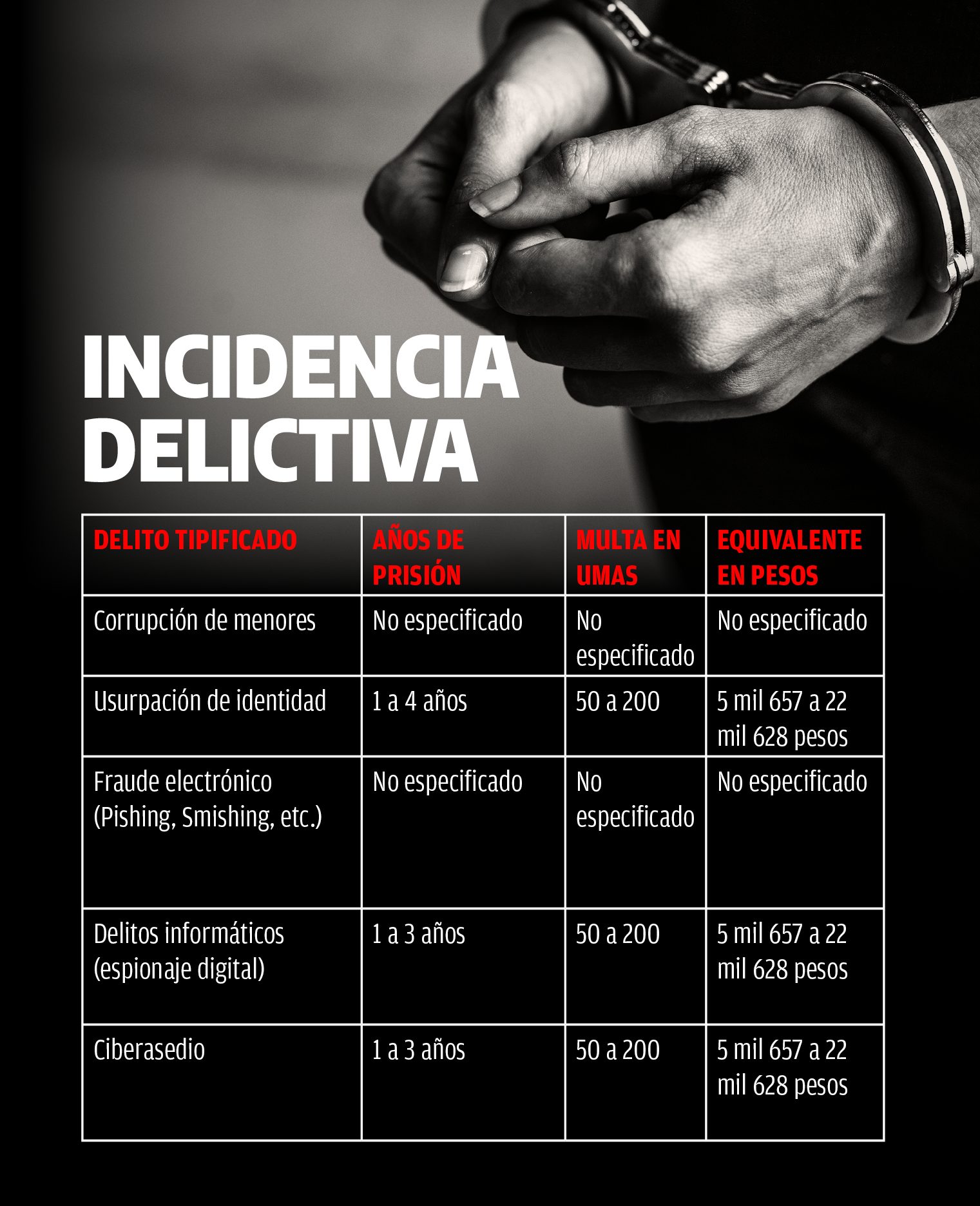 Dicha norma, además, tipifica los delitos de usurpación de identidad y el espionaje digital, así como también impone sanciones por el uso del espectro digital con la finalidad chantajear o “controlar emocionalmente” a menores con fines sexuales y a aquellos que se hagan pasar como una institución financiera para obtener, mediante engaños, datos sensibles de otras personas.