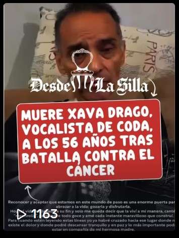 Muere Xava Drago, vocalista de Coda, a loas 56 años tras batalla contra el cáncer agosto 21, 2025 Corte Informativo