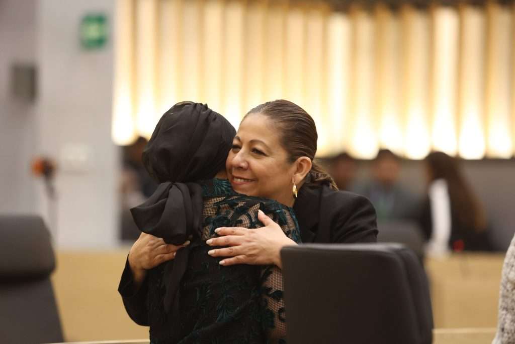 La presidenta de la Junta de Gobierno y Coordinación Política del Congreso del Estado, Laura Artemisa García Chávez, en compañía de la diputada Nayeli Salvatori Bojalil y del diputado Roberto Zataráin Leal,