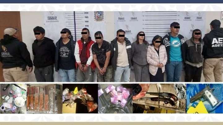 La Fiscalía General del Estado de Puebla realizó acciones para combatir el narcomenudeo en la junta auxiliar de San Miguel Canoa, del municipio de Puebla, logrando la detención de nueve personas, dos femeninas y siete masculinos, presuntamente en posesión de droga y armas de fuego.