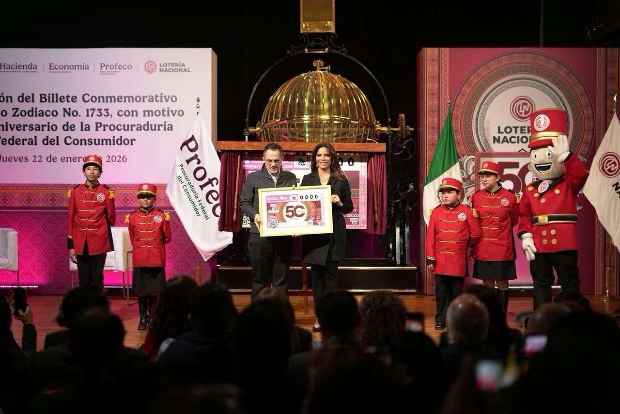 En el marco del 50 Aniversario de la Procuraduría Federal del Consumidor (Profeco), la Lotería Nacional presentó el billete del Sorteo Zodiaco No. 1733, que reconoce a una institución que se convirtió en un pilar de la democracia económica de México y es clave en la historia de la justicia social, el derecho mercantil y la protección de las personas frente a las fuerzas de un mercado que evoluciona constantemente en el ámbito global y digital.