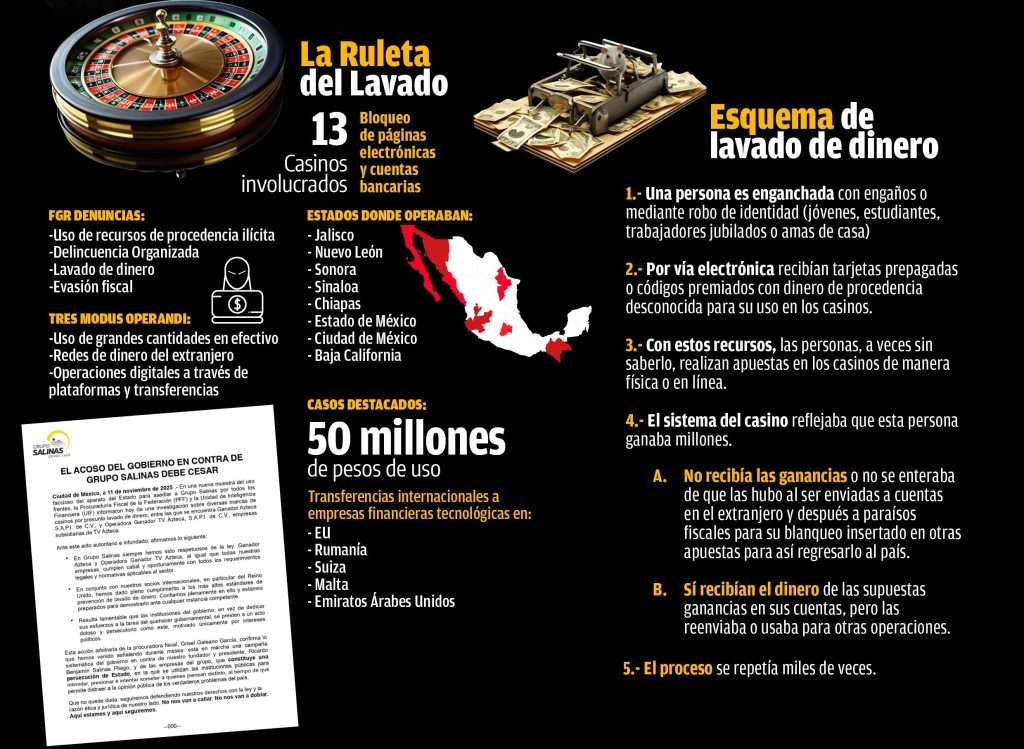 El Gobierno de México encendió los reflectores sobre una red de presunto lavado de dinero que operaba en 13 casinos del país, tras una investigación encabezada por las Secretarías de Seguridad y Protección Ciudadana (SSPC) y de Hacienda y Crédito Público (SHCP).