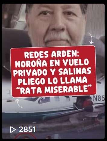 Redes arden: Noroña en vuelo privado y Salinas Pliego lo llama «rata miserable»