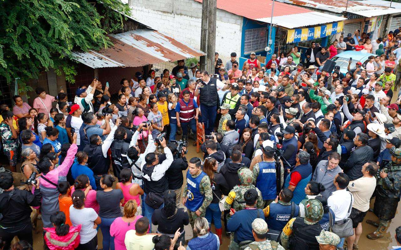 Acompañado del gobernador Melquiades Morales Flores, el presidente de México constataba con sus propios ojos la destrucción, el dolor, los incansables trabajos de rescate de personas todavía sepultadas bajo el lodo.