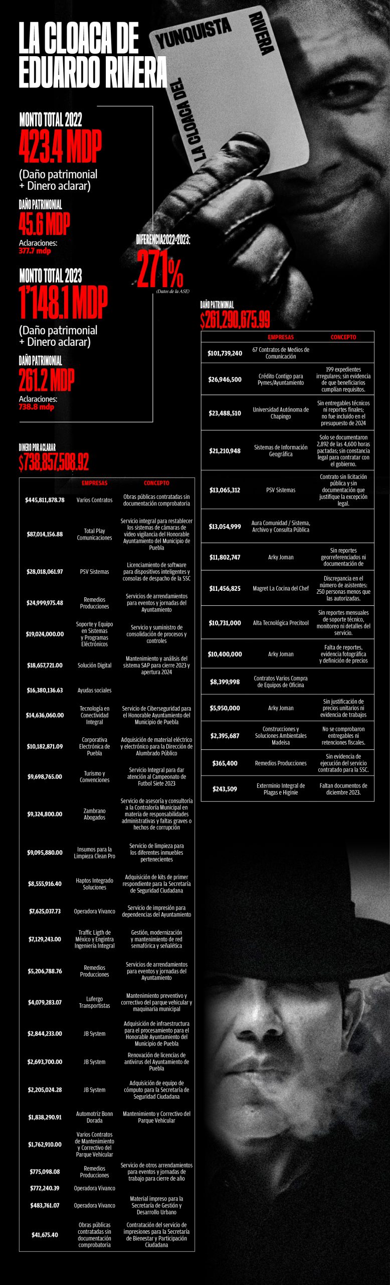 En un solo año, las observaciones de la Auditoría Superior del Estado (ASE) al gobierno municipal que encabezó Eduardo Rivera Pérez pasaron de preocupar a escandalizar. Si en 2022 se señalaron irregularidades por poco más de 423.4 millones de pesos, en 2023 la cifra se disparó a mil millones 148 mil pesos.