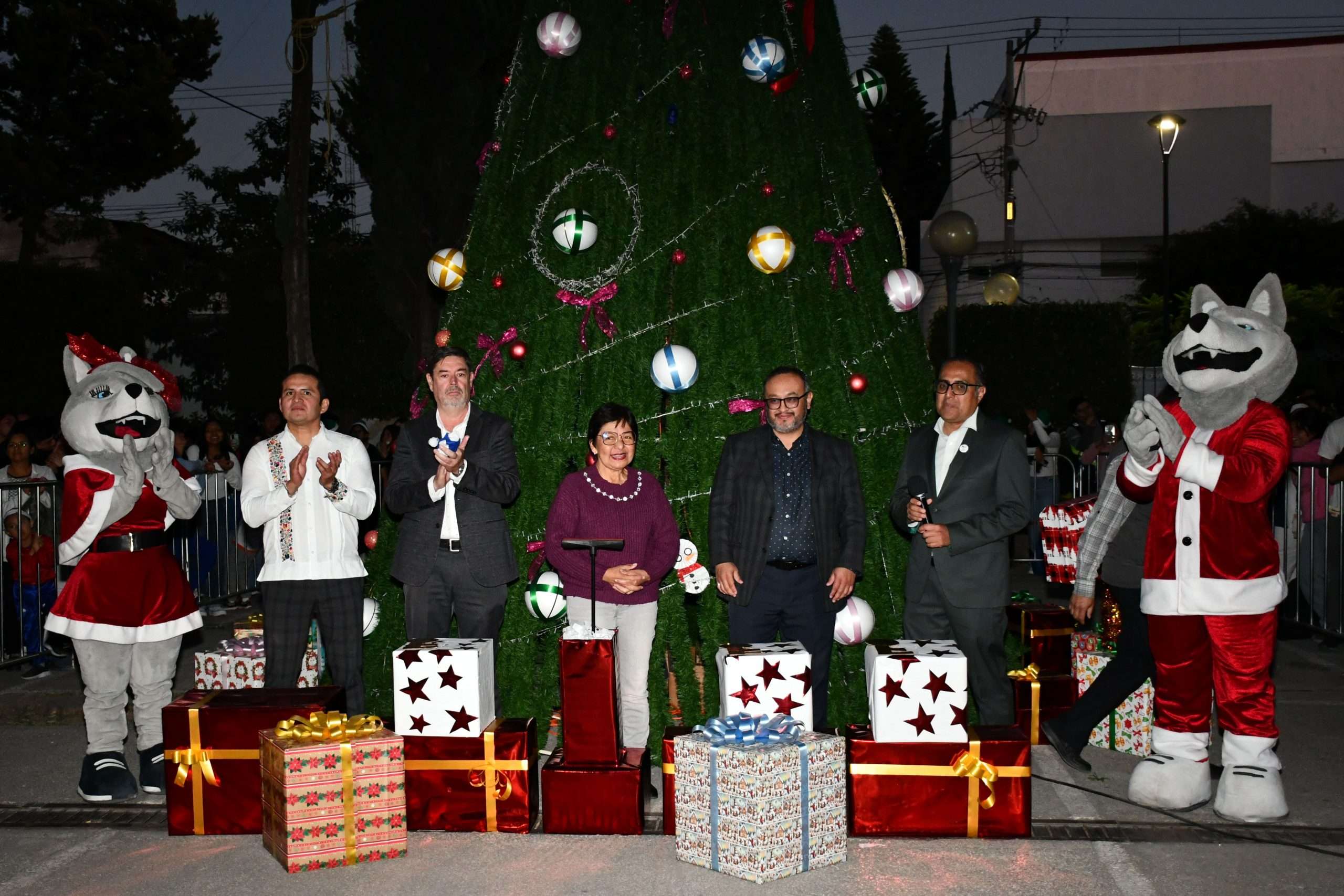 Enciende la rectora Lilia Cedillo el Árbol de Navidad en el área de la Salud