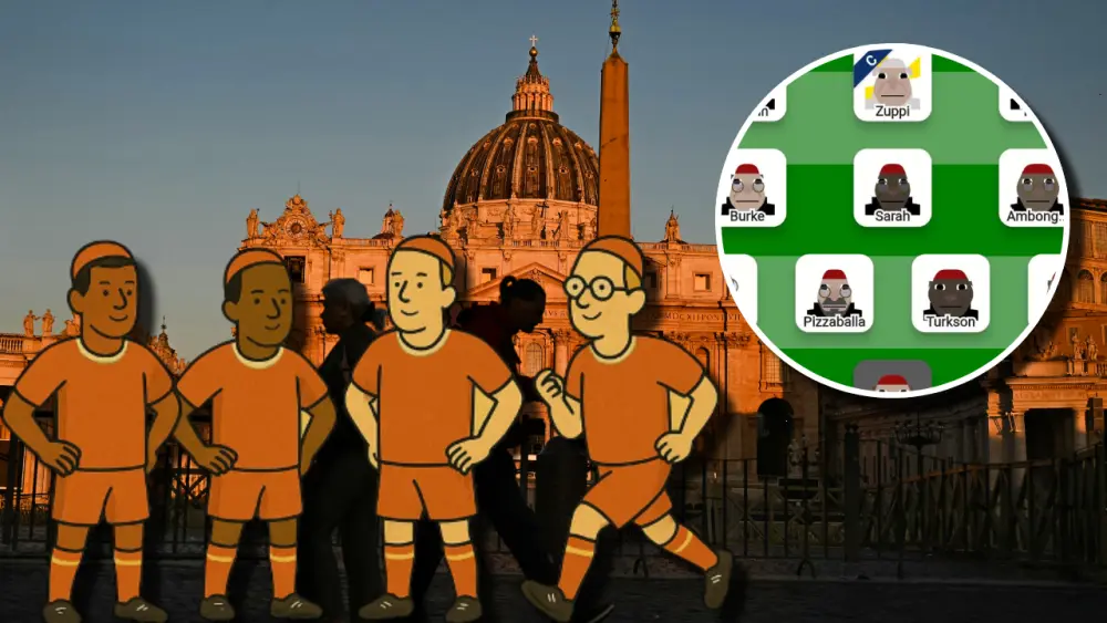 Mykola Bychok, arzobispo ucraniano de Melbourne en Australia —actualmente el cardenal más joven del mundo— es el más elegido como arquero, lo que indica que la mayoría de los jugadores no creen que se convertirá en Papa.