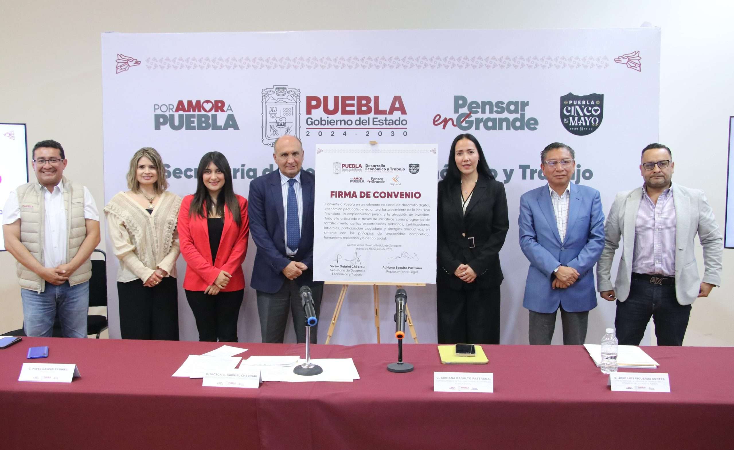 El gobierno de Alejandro Armenta impulsa la seguridad económica y digital del estado mediante la firma de un convenio con la empresa SkyLand para implementar el Ecosistema Puebla Digital, un hub tecnológico que conectará las actividades económicas de la entidad. Este proyecto, con inversión 100 por ciento privada y sin costo para el gobierno estatal, fortalecerá en seis meses a mil 500 empresas, generará más de 6 mil empleos directos e indirectos y abrirá la puerta a nuevas oportunidades para miles de familias poblanas.