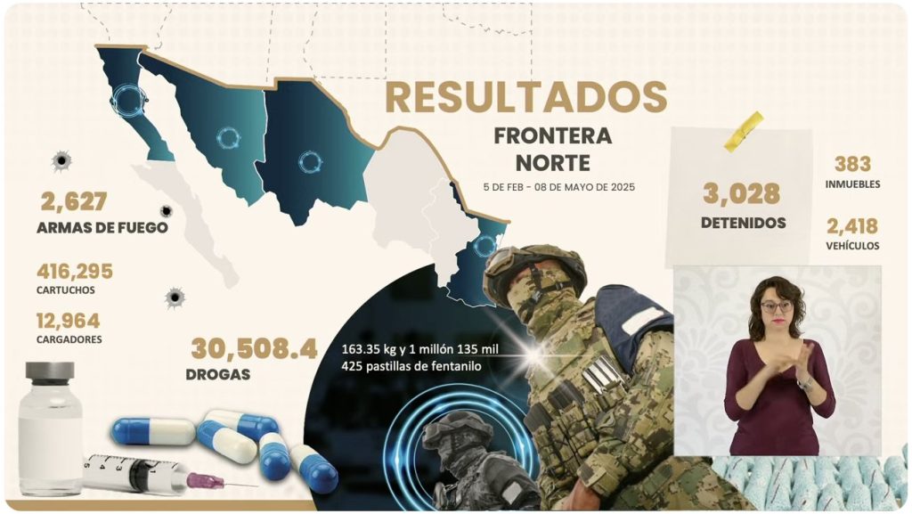 Estos datos fueron expuestos durante la presentación de los resultados de la Operación Frontera Norte, la cual ha tenido importantes avances en la lucha contra el crimen organizado: