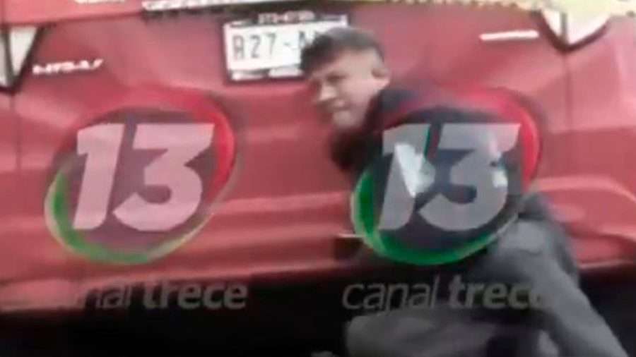 En los videos difundidos se ve cómo cae entre el polvo mientras sus compañeros, confundidos corren, además, tres personas vestidas de civil, presumiblemente ministeriales, se dispersan.