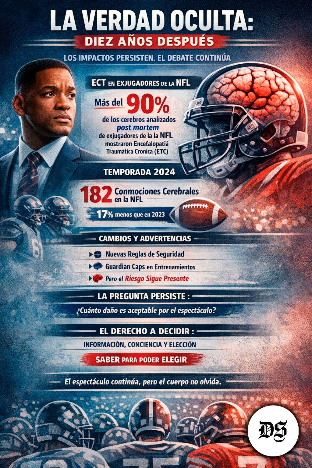 En 2015, La verdad oculta (Concussion) llegó a los cines con Will Smith interpretando al Dr. Bennet Omalu. Muchos la vieron entonces como un drama biográfico más: el científico solitario contra una institución poderosa. Hoy, en plena temporada reciente de la NFL, la película se siente menos como cine y más como advertencia persistente. Porque la historia que contó no terminó. Sigue ocurriendo cada domingo.