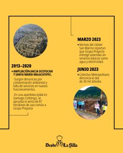 En la colonia La Cantera, por ejemplo, habitantes denunciaron que Grupo Proyecta adquirió terrenos a precios irrisorios, amenazando con desalojos forzosos. En marzo de 2025, la empresa derribó una vivienda sin orden judicial, lo que generó temor entre los vecinos.