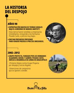 Quienes se han resistido a vender sus tierras han enfrentado procesos judiciales, como el caso de José Emiliano Zambrano, encarcelado por nueve meses y posteriormente sentenciado por un delito distinto al inicialmente imputado.