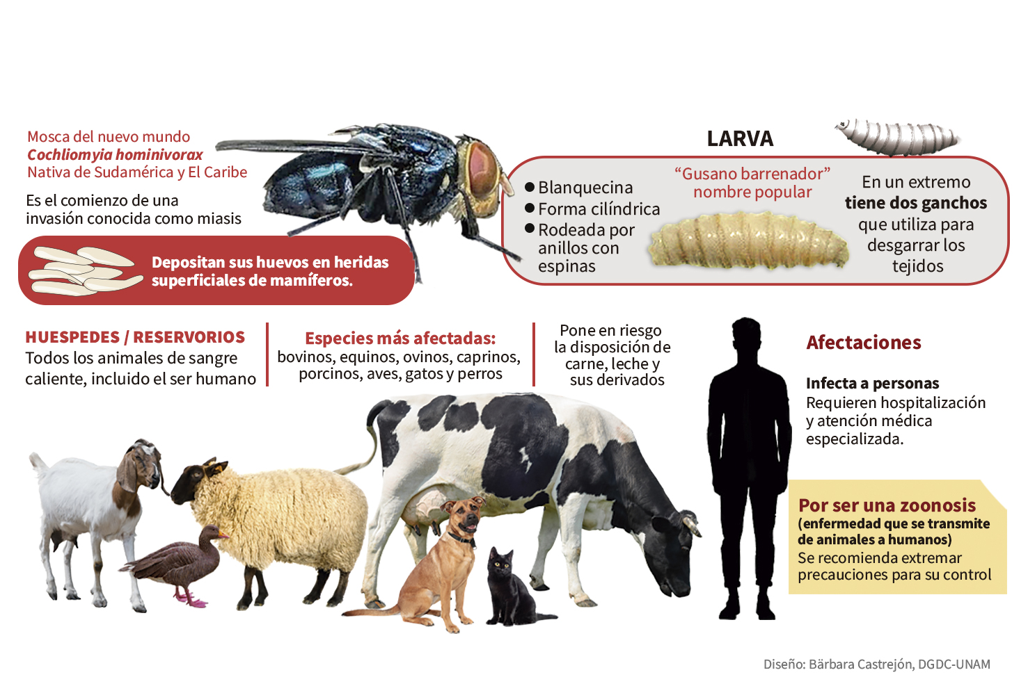 María del Rocío Campuzano Hernández, del Instituto Interamericano de Cooperación para la Agricultura, explicó que el incremento de casos podría estar relacionado con una mayor atención de los productores a los llamados de notificación. Aclaró también que el GBG no se transmite por la carne y que el tratamiento oportuno permite la recuperación de los animales afectados.
