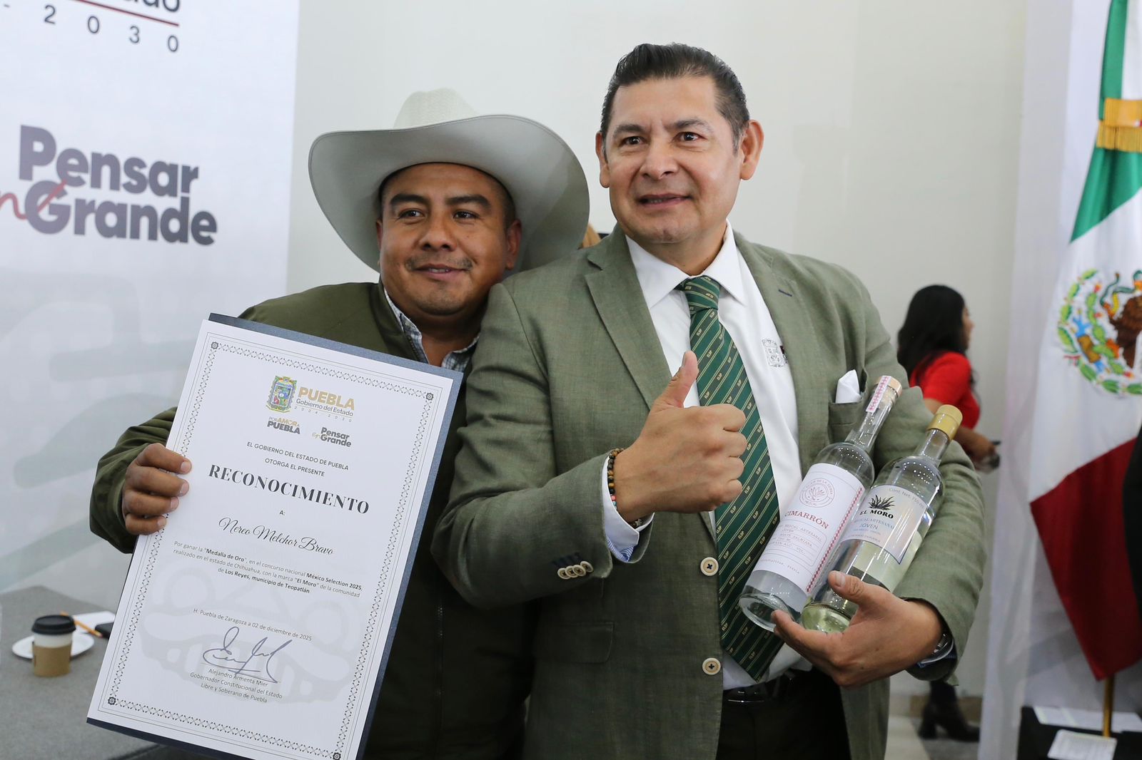 Al entregar reconocimientos a las y los 35 maestros mezcaleros que triunfaron en el Concurso Nacional México Selection 2025, el gobernador Alejandro Armenta subrayó que las y los productores son un orgullo para las y los poblanos, ya que son “mezcaleros de alto rendimiento”, pues son producto del amor al agave.