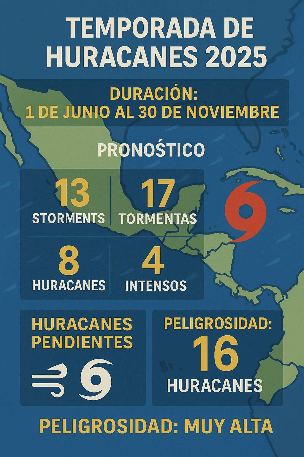 Con base en los pronósticos de la temporada de huracanes 2025, aún se esperan al menos ocho sistemas con nombre que podrían impactar de forma indirecta o directa el centro y sureste del país. De estos, tres presentan potencial alto de peligrosidad para la región de Puebla, particularmente en áreas cercanas a cuencas fluviales y presas.