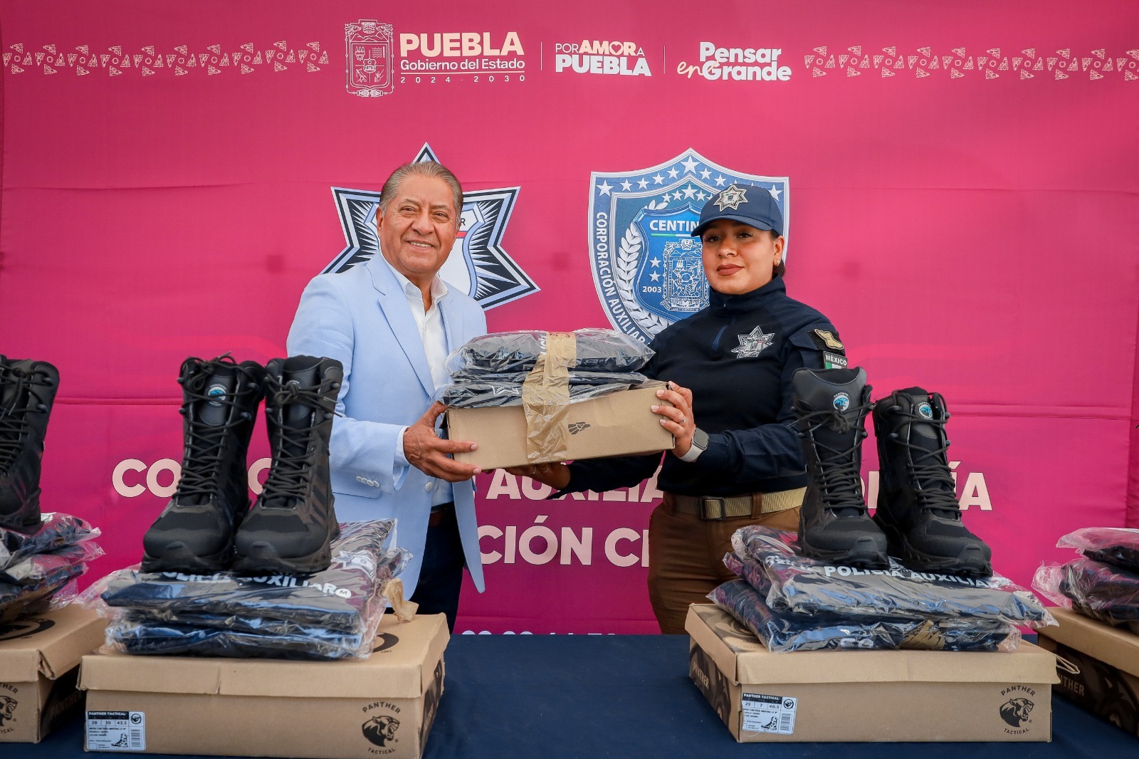 Como parte de una estrategia orientada a mejorar las condiciones operativas de las y los guardias policiales y del personal médico que integra la Corporación Auxiliar de Policía de Protección Ciudadana, el Gobierno del Estado de Puebla, encabezado por el gobernador Alejandro Armenta Mier, concluyó con la entrega de uniformes.