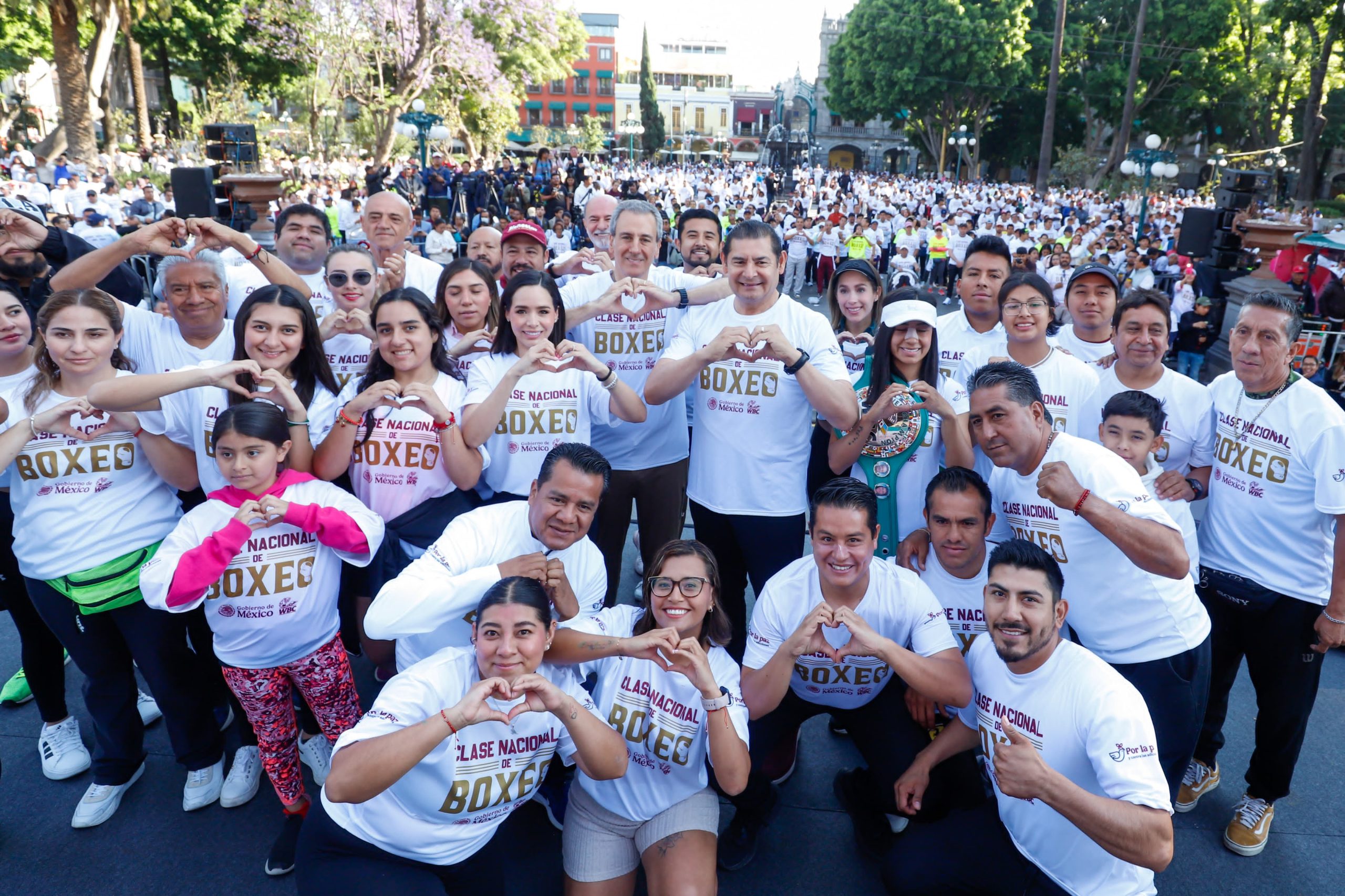 Con la participación de más de 3 mil poblanas y poblanos, y de 150 municipios de la entidad, el gobierno de Alejandro Armenta se sumó a la Clase Nacional de Boxeo, encabezada por la presidenta de México, Claudia Sheinbaum, que se llevó a cabo de manera simultánea en plazas públicas de todo el país. Esta actividad tuvo como objetivo generar en la juventud mexicana opciones deportivas, alejarlas de los vicios y contribuir a la construcción de la paz.