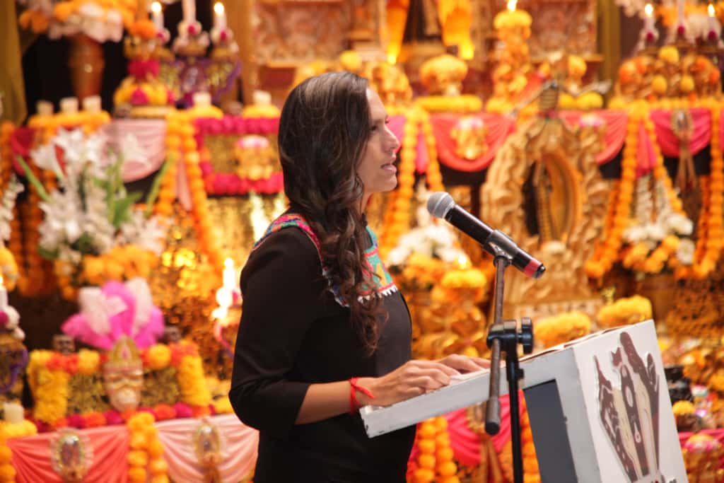 Durante su intervención, la titular de la Gerencia del Centro Histórico y Patrimonio Cultural, Aimeé Guerra Pérez, destacó que quienes visiten el corazón de Puebla podrán disfrutar de veinte catrinas monumentales de más de tres metros de altura, así como del Paseo de las Flores, un recorrido lleno de color que se extiende desde la 11 Sur, sobre la Avenida Reforma y Juan de Palafox y Mendoza.