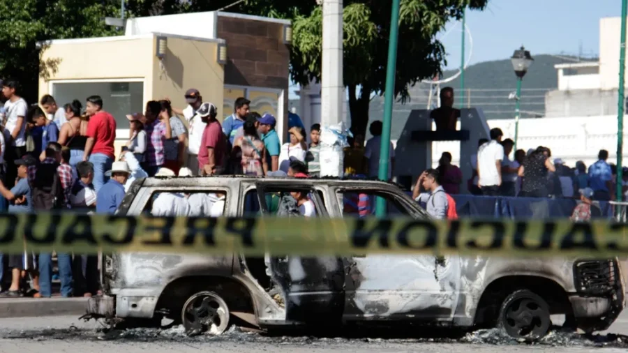 La situación desbordó las calles del municipio, provocando una ola de violencia en la que incluso el Palacio Municipal fue incendiado y tres patrullas destruidas.