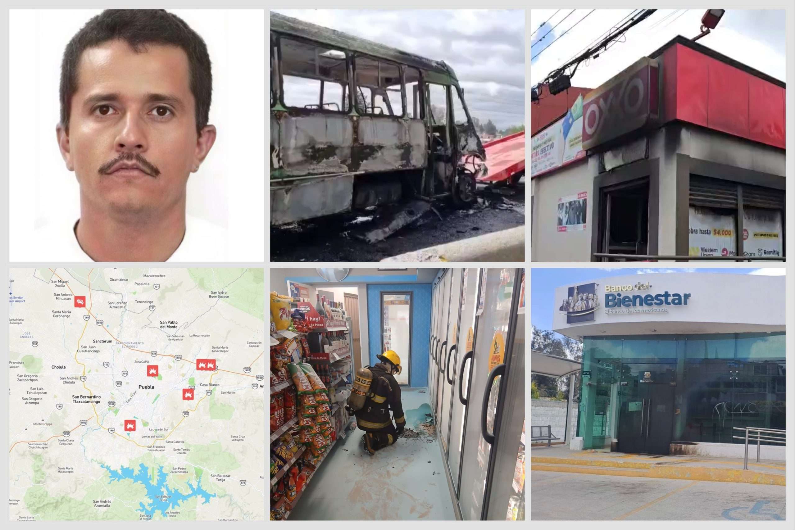 Entre los incidentes confirmados en el estado se encuentran: el incendio de un tráiler en Santa Rita Tlahuapan (km 71-76 de la autopista México–Puebla), el incendio de un autobús de pasajeros en el km 113 de la misma vía, donde sujetos armados obligaron a los pasajeros a descender, y la quema de un vehículo utilitario en la autopista Puebla–Orizaba, en la zona de Cumbres de Maltrata. También se reportó un intento de incendio en una sucursal del Banco del Bienestar en Xonacatepec y la quema de una tienda Oxxo en la colonia Clavijero.