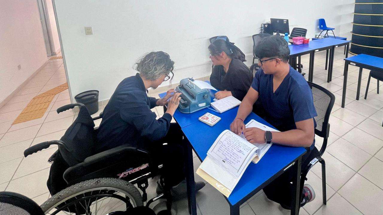 El maestro del sistema braille del Centro de Atención, Fidel Pastrana Reyes, compartió que las personas con discapacidad visual o debilidad visual, reciben acompañamiento psicológico, además de terapias como ocupacional, física, de orientación y movilidad; así como clases de cómputo, baile y pintura.