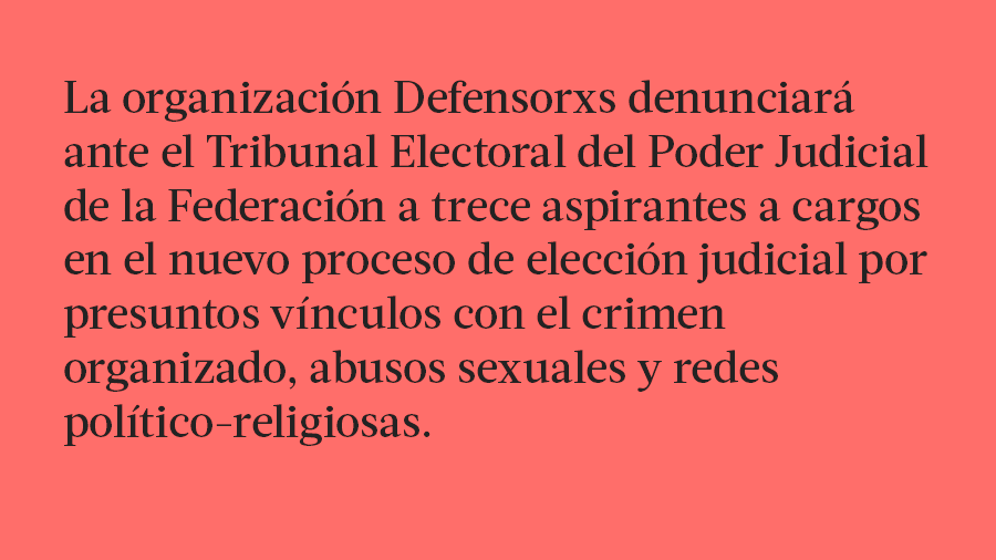 No obstante, el avance de candidaturas con antecedentes cuestionables ha generado preocupación entre organizaciones civiles. Defensorxs también lanzó una campaña de recaudación de fondos para continuar con sus labores de monitoreo y documentación del proceso. “Cada peso cuenta. Tu apoyo nos permite seguir enfrentando la impunidad”, señala el llamado difundido en su sitio web.