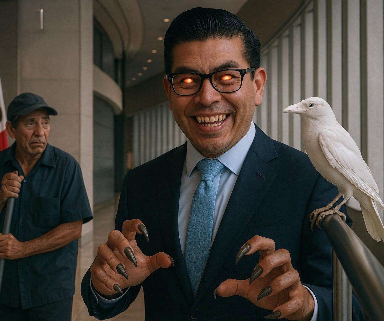 Esa tarde olía distinto. No a café recalentado ni a papel mojado, sino a intriga. Y cuando el aire huele raro en el Senado, es porque algún demonio anda suelto. Yo estaba recogiendo unos vasos olvidados cuando vi la sonrisa del náhual. No la sonrisa de un jaguar ni de un coyote… sino la de un senador de traje, con ojos encendidos y pasos de quien ya pactó con la oscuridad.